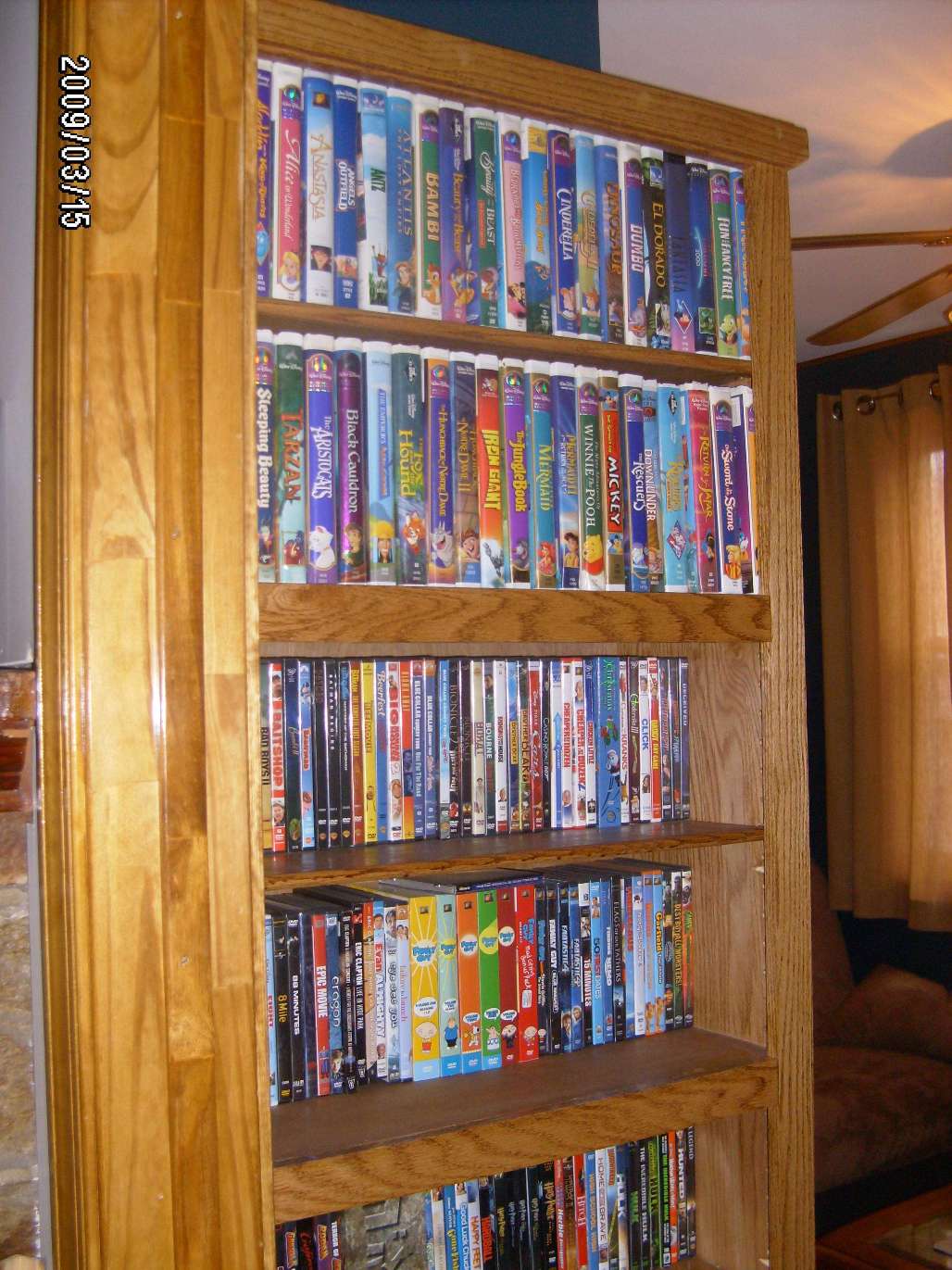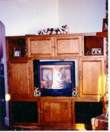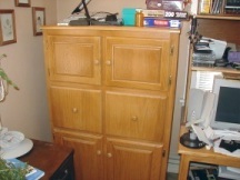 | This is a combination TV and stereo this side other side Trophy case it is also a room divider (oak) | For a good friend they call it a sofa table I think it is to low for one only 25"high (oak) | DVD and VHS Cab. 83" H and it is full |
