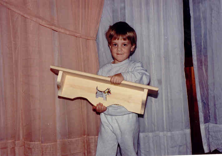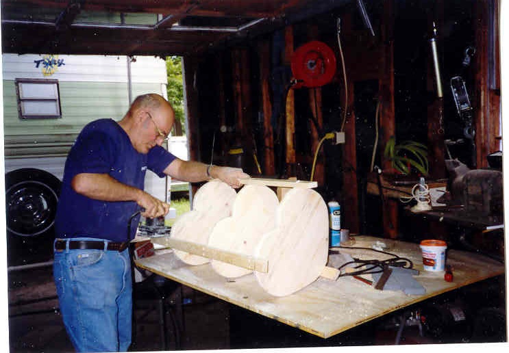 | This is the way it all started with a cheap jig saw and a hammer and nails and a little glue and pine boards from a local lumber yard who would have ever thought that it would go where it is this is back about 1989 | The three grand Daughters got the heart tables the two grand sons got